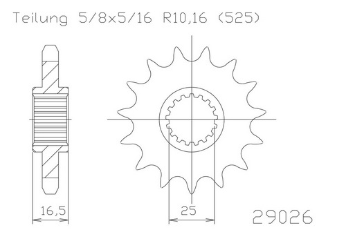 Ritzel 17 Zähne Stahl 525er Teilung (5/8x5/16)