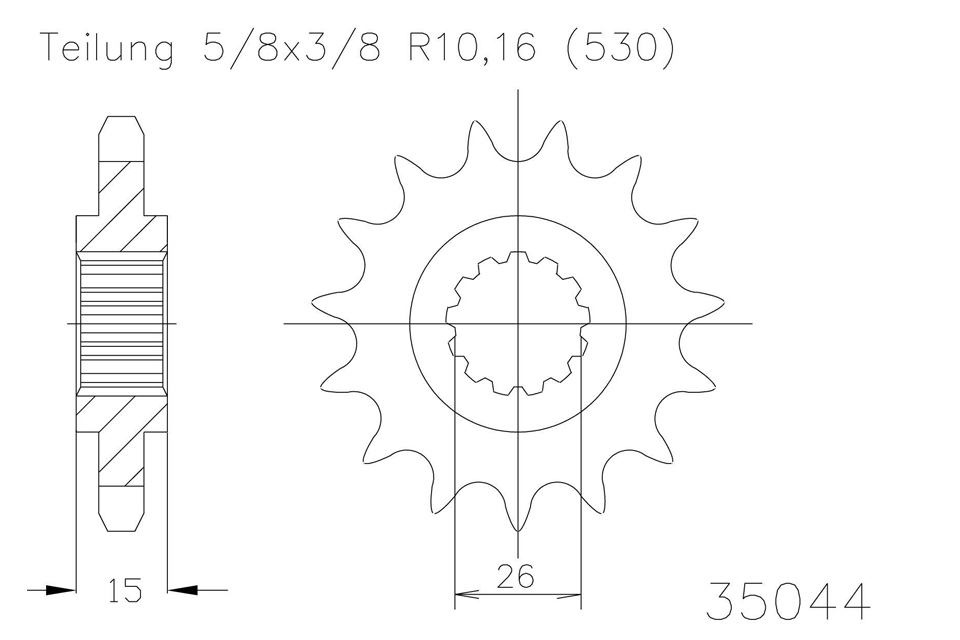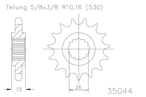 Ritzel 17 Zähne Stahl 530er Teilung (5/8x3/8)