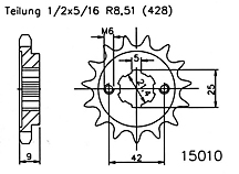 Ritzel 19 Zähne Stahl 428er Teilung (1/2x5/16)
