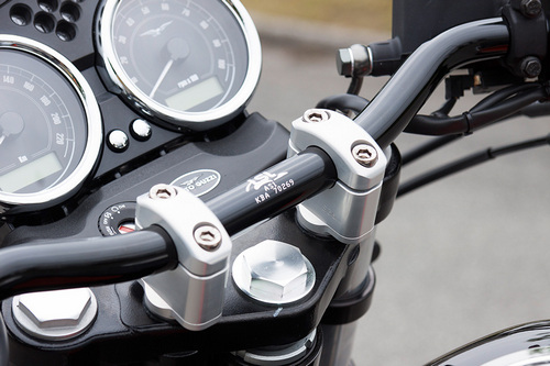 X-Bar Klemmböcke (Kennung KM45) silber oder schwarz für 28,6 mm Lenker <br>passend für folgendes Fahrzeug:<br>Moto Guzzi<br>V7<br><br><br>Material: Aluminium<br>Materialbehandlung: eloxiert<br>Befestigung: an originalen Befestigungspunkten <br>Abmaße: 28,6 mm Klemmung<br><br>Unsere modellspezifischen X-Bar Klemmböcke werden an den originalen Haltepunkten montiert. So kann auf viele Modelle mit originalem 22,2mm-Lenker einen X-Bar Lenker montieren. <br>Bei Modellen mit serienmäßiger Gummilagerung bleibt diese erhalten. Je nach Modell ändert sich die Lenkerposition von -50mm bis +30mm, der Wert für Ihr Motorrad ist unter Versatz angegeben.<br><br>ACHTUNG WICHTIGER HINWEIS: Bitte prüfen Sie vor dem Umbau, ob das für den Umbau vorgesehene Fahrzeug in der hier angehängten ABE mit aufgeführt ist!<br>Für jedes Fahrzeug gibt es unterschiedliche Voraussetzungen und Auflagen, die einen Umbau der Klemmböcke ermöglichen.<br>Die in der ABE aufgeführten Modellzuordnungen der LSL-Klemmböcke sind geprüft für die Verwendung mit dem Serienlenker des Fahrzeuges.<br>Die zusätzliche Verwendung eines LSL-Zubehörlenkers ist möglich, kann aber auf Grund einer abweichenden Form des Lenkers zusätzliche Änderungen am Fahrzeug (längere Leitungen oder Züge) erforderlich machen.<br>Auch die Erhöhung des Original Lenkers kann zu zusätzlichen Änderungen am Fahrzeug führen.<br>Prüfen Sie ob folgende Auflagen für Ihr Fahrzeug zutreffen (-siehe ABE):<br>- Verwendung zulässig bei Verwendung einer Ausgleichsunterlage für die Gabelbrücke<br>- mit 20 mm längerer Bremsleitung Verwendung zulässig<br>- mit 30 mm längerer Bremsleitung Verwendung zulässig<br>- mit LSL Instrumentenhalter Verwendung zulässig<br><br>Bei Nichtbeachtung erlischt die Betriebserlaubnis für das Fahrzeug!<br><br>Folgende Artikel passen zu diesem Produkt: 28,6 mm-Lenker X-Bar