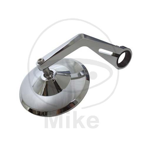 Highsider Universal Lenkerendenspiegel Montana, rund, Aluminium Kopf chrom, für 1" (25,4 mm) und 7/8" (22 mm) Lenker, E-geprüft. Durchmesser Kopf: 102 mm Stiellänge: 70mm vom Kopf bis zum Knick und 115 mm bis zum Schellenende