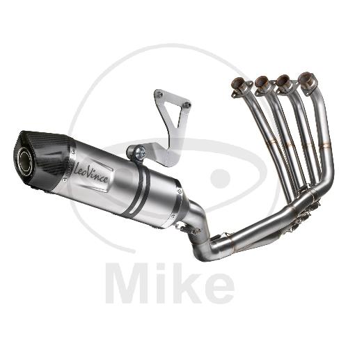 LeoVince LV-ONE Komplettanlage aus Edelstahl im Titanlook II. Sonorer Klang, Leistung und edles Design. Ein Schalldämpfer, der die klassischen Stilelemente dieses traditionellen italienischen Herstellers perfekt kombiniert mit Touch des Modernen. - Die Ummantelung besteht aus einer sandgestrahlten Edelstahl-Hülle, die den so begehrten und eleganten Titan-Look bewirkt- Er ist enorm schlank und schlagfest. - Der ovale Querschnitt mit den eckigen Fluchtlinien dazu gibt ihm eine seltene Kompaktheit. Alle Schweissverbindungen am Schalldämpfer erfolgen im TIG-Verfahren. Die Endkappe - und das ist eine echte Neuheit . Bei diesem Modell - besteht komplett aus hitzefestem und somit gegen enorm hohe Temperaturen widerstandsfähigem Carbon und hat eine asymmetrische und dadurch aggressive Formgebung. Aus Carbon ist ebenfalls die Rahmenhalterung des Schalldämpfers.