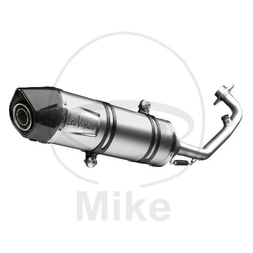 LeoVince LV-ONE Komplettanlage aus Edelstahl im Titanlook II. Sonorer Klang, Leistung und edles Design. Ein Schalldämpfer, der die klassischen Stilelemente dieses traditionellen italienischen Herstellers perfekt kombiniert mit Touch des Modernen. - Die Ummantelung besteht aus einer sandgestrahlten Edelstahl-Hülle, die den so begehrten und eleganten Titan-Look bewirkt- Er ist enorm schlank und schlagfest. - Der ovale Querschnitt mit den eckigen Fluchtlinien dazu gibt ihm eine seltene Kompaktheit. Alle Schweissverbindungen am Schalldämpfer erfolgen im TIG-Verfahren. Die Endkappe - und das ist eine echte Neuheit . Bei diesem Modell - besteht komplett aushitzefestem und somit gegen enorm hohe Temperaturen widerstandsfähigem Carbon undhat eine asymmetrische und dadurch aggressive Formgebung. Aus Carbon ist ebenfalls die Rahmenhalterung des Schalldämpfers.