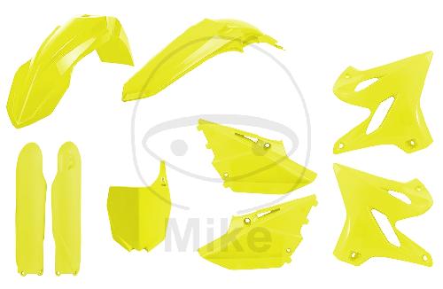 Komplett Kit von Polisport. Inhalt:- Schutzblech vorne (gelb fluoreszierend)- Schutzblech hinten (gelb fluoreszierend)- Kühlerabdeckung (gelb fluoreszierend)- Seitenverkleidung (gelb fluoreszierend)- Startnummerntafel (gelb fluoreszierend)