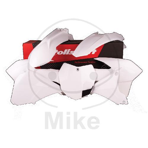 Komplett Kit von Polisport Inhalt: - Schutzblech vorne (weiss) - Schutzblech hinten (weiss) - Kühlerabdeckung (weiss) - Startnummerntafel (weiss) - Abdeckung Luftfilterkasten (weiss)