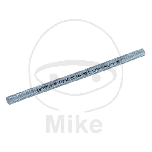 Glasklarer Drucklschlauch mit Einlagen aus verrottungsfesten Systhetikfasern