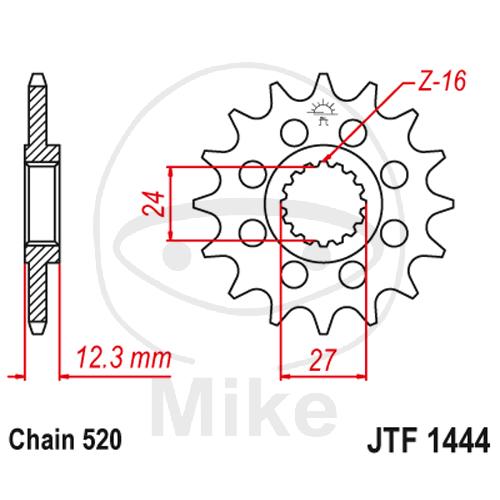 Racing-Ritzel, 16Z, Teil.: 520, feinverzahnt, Innen Ø : 24/27