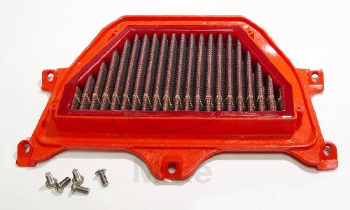 Es handelt sich hierbei um den “Race" Filter, d.h. ein Filter der von der Form gleichbleibend ist wie der Standard Filter, aber von dem Filtermaterial so aufgebaut wurde, dass ein erhöhter Luftdurchlass gegenüber anderen Filtersystemen gegeben ist, aber natürlich die Filterwirkung trotzdem beibehält. Der BMC “Race" Filter wurde für diejenigen konzipiert, die sich nicht mit der normalen Leistung des Motorrades zufrieden geben, sondern den Motor und das Steuergerät modifizieren,