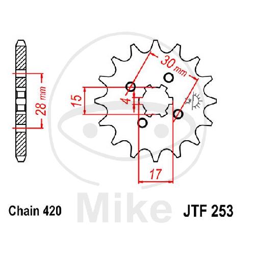 Ritzel, 13Z, Teil.: 420, grobverzahnt 4, Innen Ø : 15/17