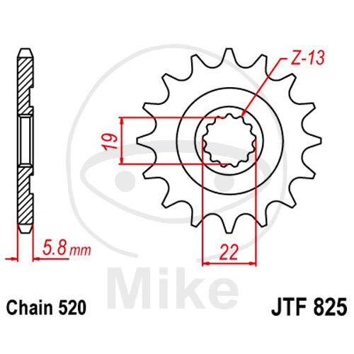 Ritzel, 13Z, Teil.: 520, feinverzahnt, Innen Ø : 19/22