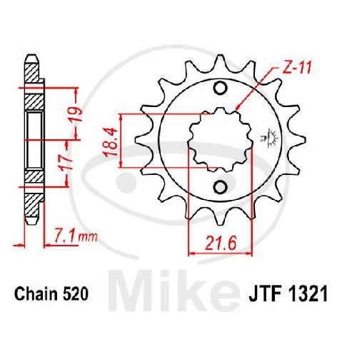 Ritzel, 14Z, Teil.: 520, feinverzahnt, Innen Ø : 18.4/21.6