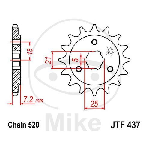 Ritzel, 14Z, Teil.: 520, grobverzahnt 5, Innen Ø : 21/25