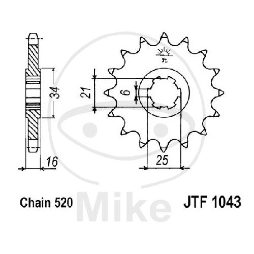 Ritzel, 14Z, Teil.: 520, grobverzahnt 6, Innen Ø : 21/25