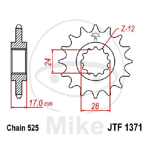 Ritzel, 14Z, Teil.: 525, feinverzahnt, Innen Ø : 24/28