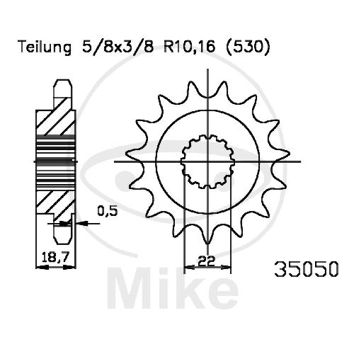Ritzel, 14Z, Teil.: 530, feinverzahnt, Innen Ø : 22/25