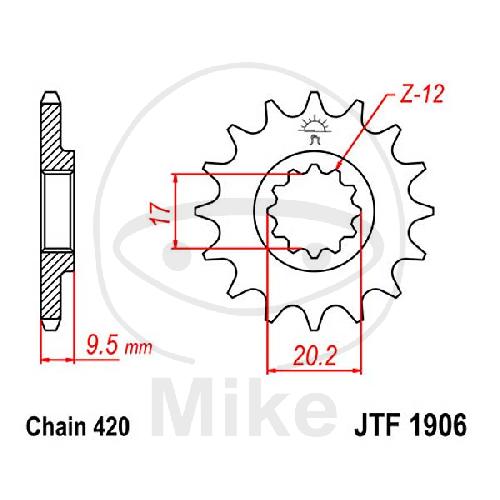 Ritzel, 15Z, Teil.: 420, feinverzahnt, Innen Ø : 17/20.2