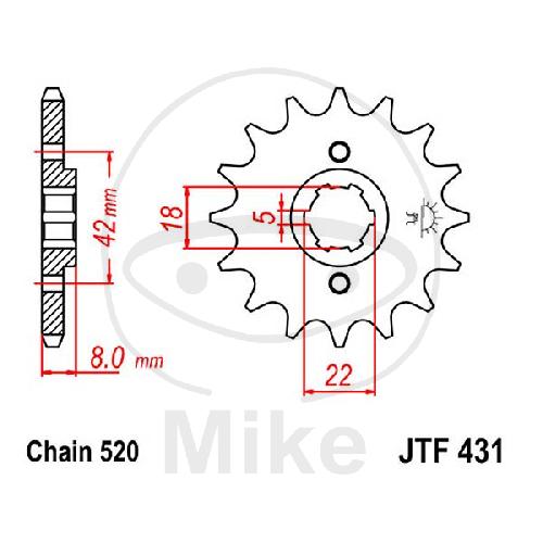 Ritzel, 15Z, Teil.: 520, feinverzahnt, Innen Ø : 18/22