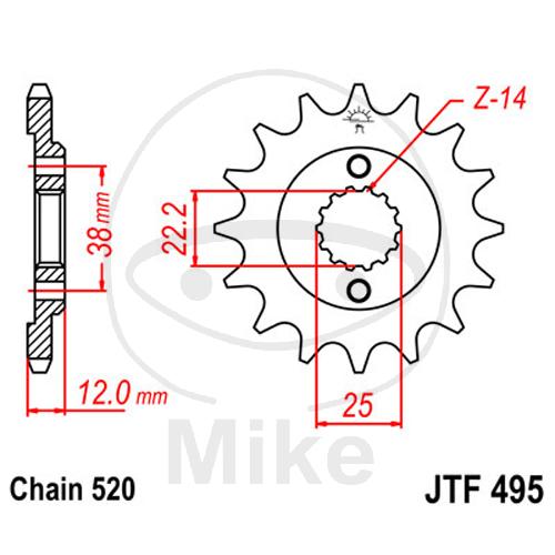 Ritzel, 15Z, Teil.: 520, feinverzahnt, Innen Ø : 22.2/25