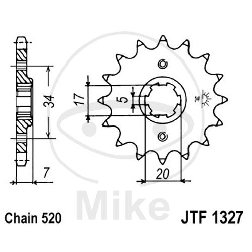 Ritzel, 15Z, Teil.: 520, grobverzahnt 6, Innen Ø : 17/20