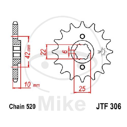 Ritzel, 15Z, Teil.: 520, grobverzahnt 6, Innen Ø : 22/25