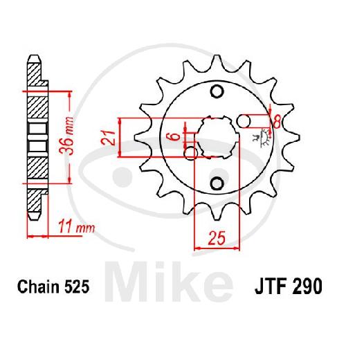 Ritzel, 15Z, Teil.: 525, grobverzahnt 6, Innen Ø : 21/25