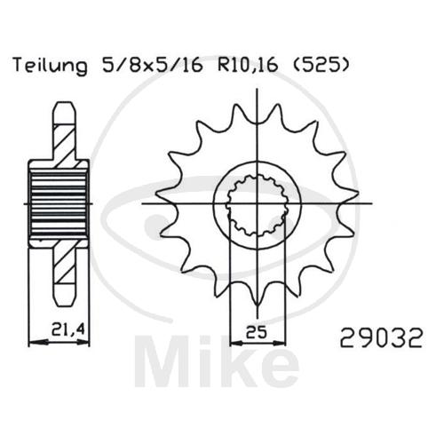 Ritzel, 16Z, Teil.: 525, feinverzahnt, Innen Ø : 25/28