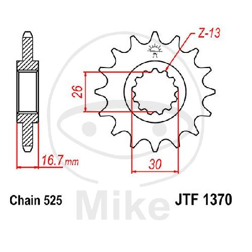Ritzel, 16Z, Teil.: 525, feinverzahnt, Innen Ø : 26/30