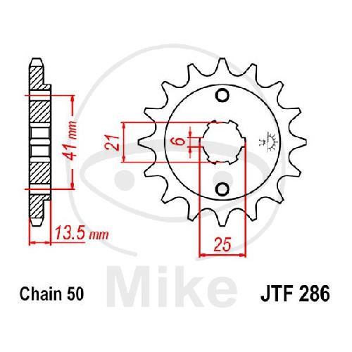 Ritzel, 16Z, Teil.: 530, grobverzahnt 6, Innen Ø : 21/25