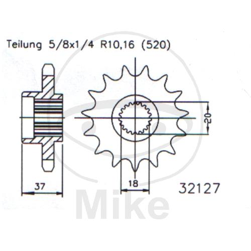 Ritzel, 18Z, Teil.: 520, feinverzahnt, Innen Ø : 21.4/25