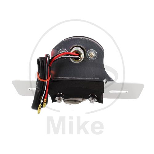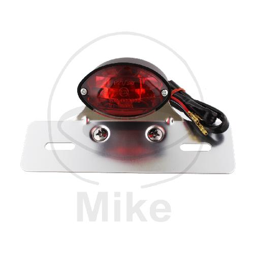 JMP Mini-Rückleuchte Cat-Eye - Rückleuchte mit E-Prüfzeichen - Kunststoffgehäuse schwarz - Nummernschildbeleuchtung - Aluminium Nummernschildhalter - Glühbirne: 21/5 W - Glas: rot - Breite: 65 mm - Höhe: 40 mm - Tiefe: 40 mm - Lochabstand: 37 mm