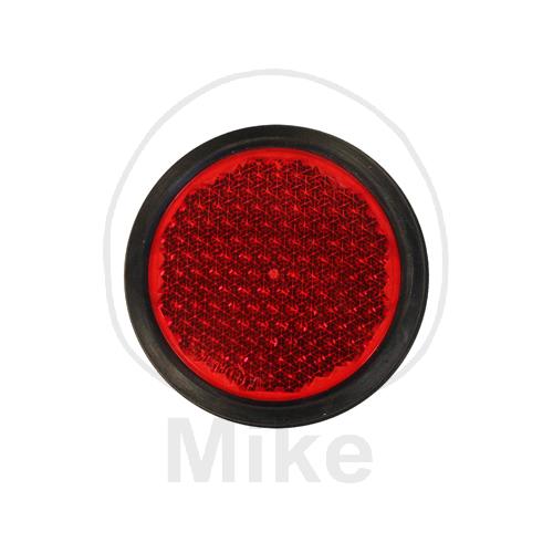 Runder Rückstrahler, rot Alu-Gehäuse mit Gummi-Mantel. Mit 1 Schraube M 5. Typ: RMG 08 Reflektor-Ø: 75 mm Gehäuse-Ø: 90 mm Verpackungseinheit: 20