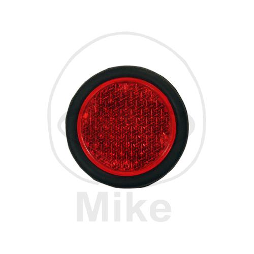 Runder Rückstrahler, rot Alu-Gehäuse mit Gummi-Mantel. Mit 1 Schraube M 5 Typ: RMG 05 Reflektor: 50 mm Gehäuse: 65 mm