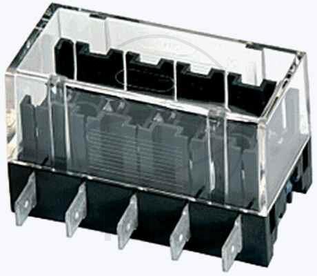 Sicherungsdose für Flachstecksicherungen Aufbau: maximal 5 Sicherungen Pole: 10 Info: horizontale Anordnung, ohne Befestigungswinkel, transparenter Deckel