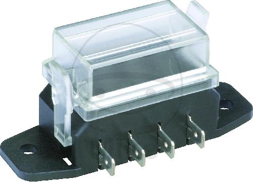 Sicherungsdose für Flachstecksicherungen Passend für Standardsicherung (ATO / Midi) 19,1x5,1x18,5 Amp. Aufbau: ohne Sicherung Pole: 4 Lochabstand: 65 mm
