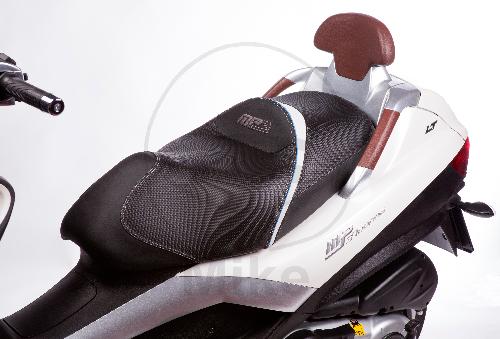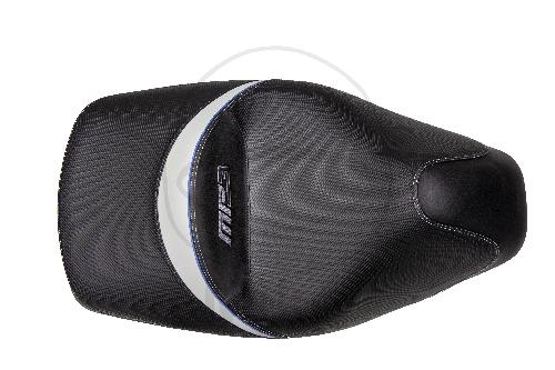Sitzbänke von Shad - komplette Eigenentwicklung für mehr Komfort - verbesserte Ergonomie für Fahrer und Beifahrer - optimierte Gewichtsverteilung auf der Sitzfläche - keine Temperaturempfindlichkeit - keine Verformung bei langen Fahrten - absorbiert Vibrationen und dämpft Stösse - Verwendung intelligenter Materialien - wasserdicht versiegelte Nähte Farbe : schwarz/weiss mit grau-blauen Nähten