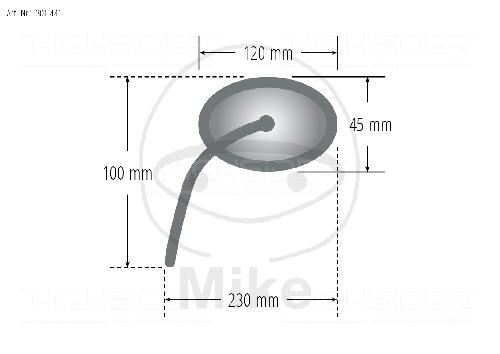 Masse:Breite, Kopf: 120 mm Höhe, Kopf: 48 mmLänge, Arm bis zum Gelenk: 140 mm Länge, Arm bis zum Gewindebolzen: 170 mm