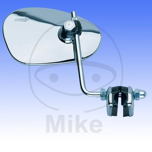 Spiegel ohne E-Prüfzeichen - Beinschildspiegel - Stahl verchromt - Spiegelkopf 120 x 80 mm - mit Verkleinerungsglas - 7 mm Stange, verzinkt - gekröpft - mit Metallklammer mit Kunststoffeinlage - rechts