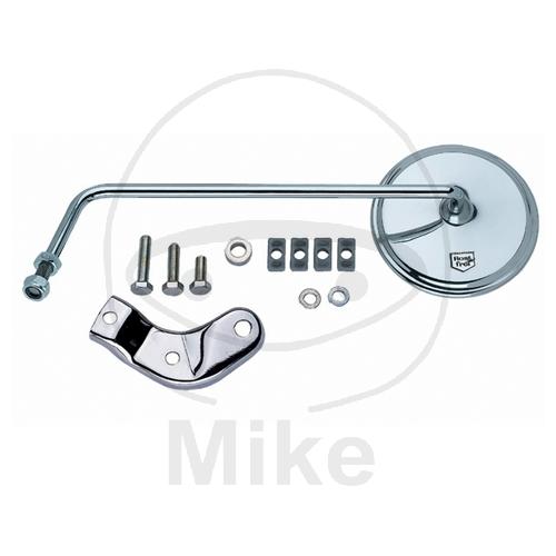 für alle Vespa-Modelle mit und ohne Windschutzscheibe.Mit Platte und Distanzstück. Edelstahlspiegel ohne E-Prüfzeichen - poliert - Kopf rund 127 mm - Stange 11 mm - Gewinde 10 mm rechts - verkleinernd - mit Spezialhalter