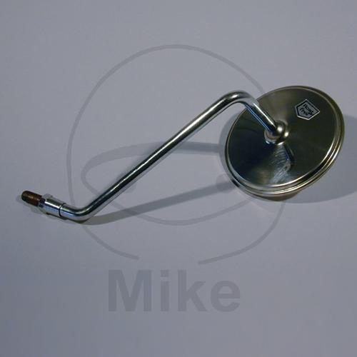 Busch & Müller Spiegel ohne E-Prüfzeichen - Edelstahl poliert - Spiegelkopf 110 mm - mit geschliffenem Verkleinerungsglas - 10 mm Stange, verchromt - gekröpft - mit 10 mm-Gewinde re. - rechts - auch für Honda CB 250/750 - Ausführung mit langer Stange