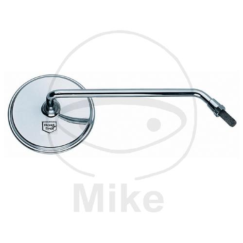 Busch & Müller Spiegel ohne E-Prüfzeichen - Edelstahl poliert - Spiegelkopf 110 mm - mit geschliffenem Verkleinerungsglas - 10 mm Stange, verchromt - gekröpft - mit 10 mm-Gewinde rechts - rechts - auch für Honda CB125/250 - Ausführung mit kurzer Stange