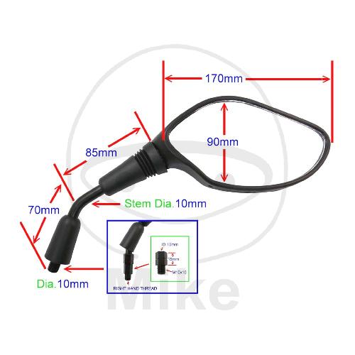 JMP Kunststoffspiegel mit E-Prüfzeichen - Spiegelkopf 170 x 95 mm - schwarz - Spiegelglas verkleinernd - M10 Linksgewinde mit Adapter zum M10 Rechtsgewinde