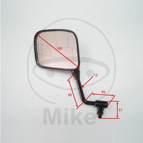 JMP Kunststoffspiegel ohne E-Prüfzeichen - schwarz - Kopf eckig 130 x 110 mm - Stange 12 mm - Gewinde 10 mm rechts - verkleinernd