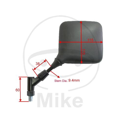 JMP Kunststoffspiegel ohne E-Prüfzeichen - schwarz - Kopf eckig 115 x 110 mm - Stange 11 mm - Gewinde 10 mm rechts - verkleinernd