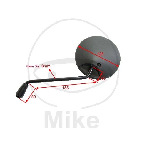 JMP Kunststoffspiegel ohne E-Prüfzeichen - schwarz - Kopf rund 125 mm - Stange 10 mm - Gewinde 10 mm rechts - verkleinernd
