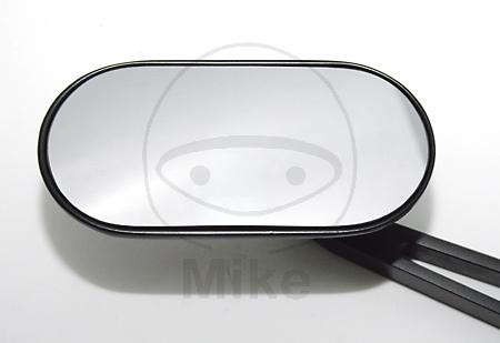 Hochwertig verarbeiteter, schwarzer Lenkerspiegel mit einem ovalen Kopf und einem leicht grau-getöntem Spiegelglas für einen optimalen Blendschutz.