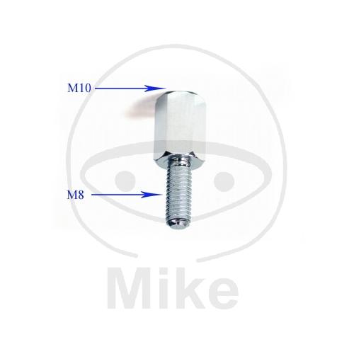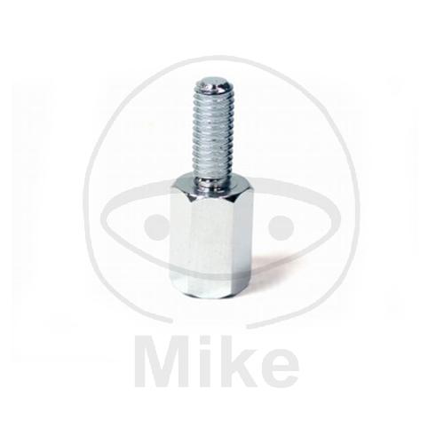 JMP Spiegeladapter, chrom - von Fahrzeugbohrung M8 Rechtsgewinde auf Spiegelstange M10 Rechtsgewinde Gesamtlänge 41 mm Länge der Verlängerung 21 mm