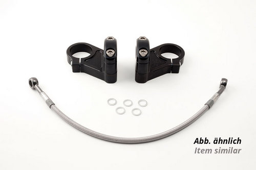 Superbike-Kit für 22,2mm Standard-Lenker<br>Die LSL-Superbike Umbaukits sind so entwickelt, dass sie mit einem vertretbaren Zeitaufwand und normaler Werkstattausrüstung auf dem Serienmotorrad montiert werden können. Je nach Modell werden die Kits mit einer kompletten Gabelbrücke oder einem ein- bzw. zweiteiligen Adapter und allen notwendigen Leitungen bzw. Zügen ausgeliefert. Die Teile sind je nach Farbe der Originalbrücke silber oder schwarz eloxiert.<br>Aufgrund der herstellerspezifisch unterschiedlichen Befestigung der Lenkerenden, können diese in der Regel nicht weiter verwendet werden, bitte prüfen Sie deren Verwendbarkeit und bestellen die gewünschten Lenkerenden dazu.<br>Die passenden Lenker sind nicht im Kit enthalten, sondern werden wegen der möglichen Material- und Farbauswahl separat dazu bestellt.<br>Bei einigen älteren Modellen kann das kürzen der Verkleidungsscheibe erforderlich sein. Wir bieten passend gekürzte Verkleidungsscheiben in Originalform oder mit Spoiler an. Dabei kann zwischen einer rauchgrauen oder schwarzen Scheibe gewählt werden. Für nähere Informationen nehmen Sie bitte Kontakt mit unserer Vertriebsabteilung auf.<br><br>Als Lenker empfehlen wir Lenker „SUPERBIKE“:<br>123L001SW schwarz (Stahl)<br>123L001CR chrom (Stahl) <br>122A001SW schwarz (Aluminium)<br>122A001SI silber (Aluminium)<br>122A001GO gold (Aluminium)<br>122A001BL blau (Aluminium)<br>122A001TI titan (Aluminium)<br>122A001NI nickel (Aluminium)<br>122A001MB perlgestrahlt (Aluminium)<br><br>Folgende Produkte passen zu diesem Artikel: Lenkergewichte 14mm bei Alu-Lenkern und 18mm bei Stahl-Lenkern / Bohrschablone<br>Wichtiger Hinweis zur Eintragung beim TÜV: <br>Sie benötigen unbedingt das mitgelieferte Superbikekit-Teilegutachten. In der Lenker-ABE sind nur Modelle gelistet, die original bereits einen Rohrlenker haben. Die Lenker-ABE ist zur Eintragung des Superbike-Kits nicht notwendig.<br><br>Lieferumfang:<br>Gabelbrücke<br>Bremsleitung/Bremsleitungen<br><br>Hinweis:<br>Es muss weder die Scheibe, noch die Verkleidung gekürzt werden!