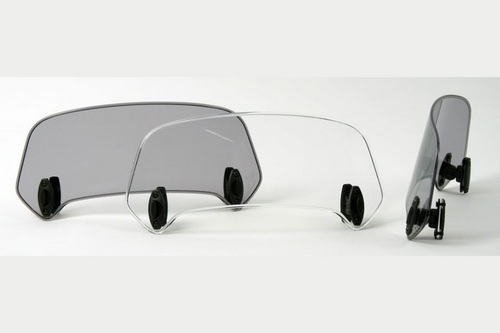 X-Creen von MRA ist ein verstellbarer Spoiler, der auf vorhandene Touring-Scheiben montiert werden kann. Um für die Befestigung keine Löcher in die vorhandene Scheibe bohren zu müssen, können optional die XCC-Klemmen (342-9050-10) verwendet werden.