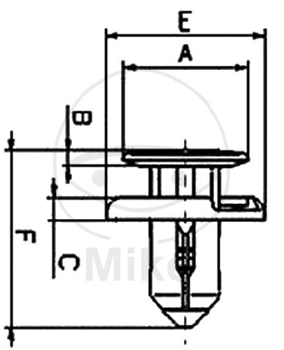 Zug-Drucknieten für Lochgrösse 6,0 mm Abmessungen (Siehe Detailbild): Dicke: 3,5 - 5,5 mm A: 14,0 mm B+C: 3,0 mm E: 11,5 mm F: 18,5 mm Inhalt: 10 Stück