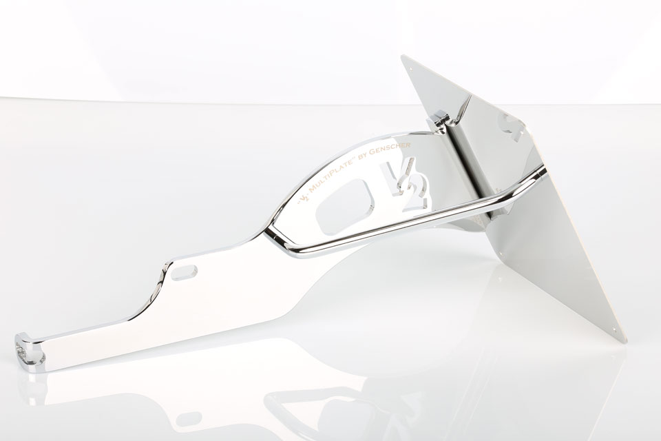 Chromed steel bracket inclusive polished license plate bracket made of stainless steel and license plate light.